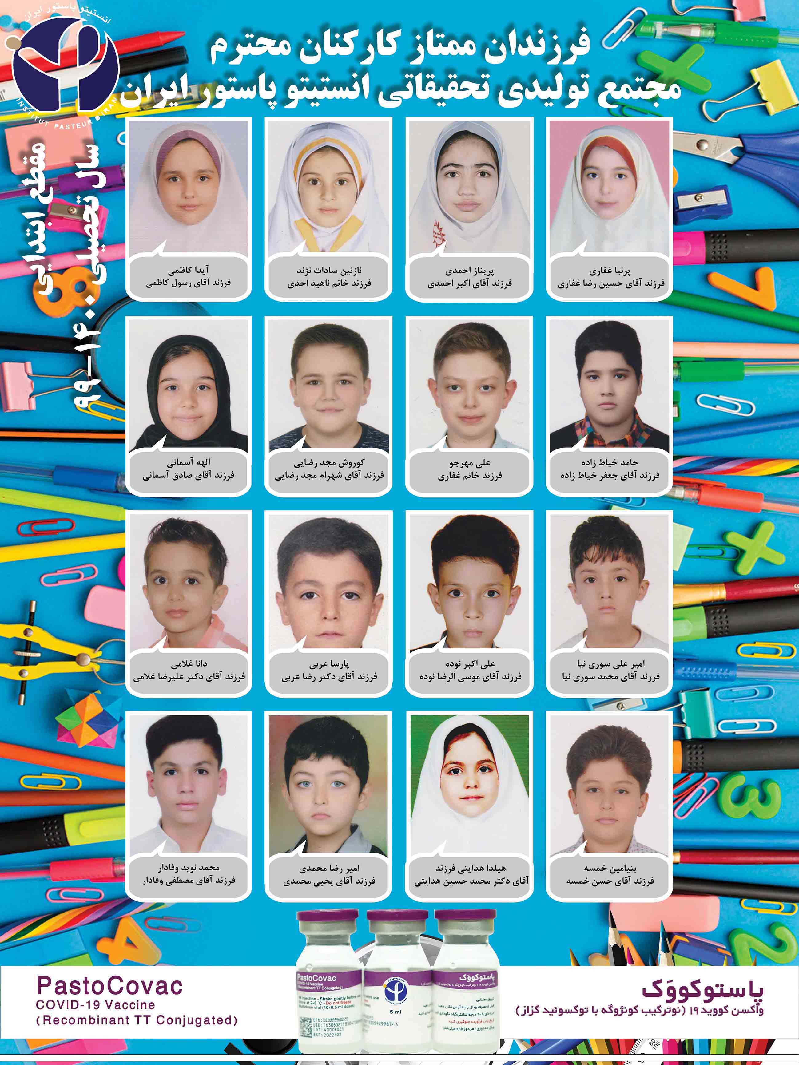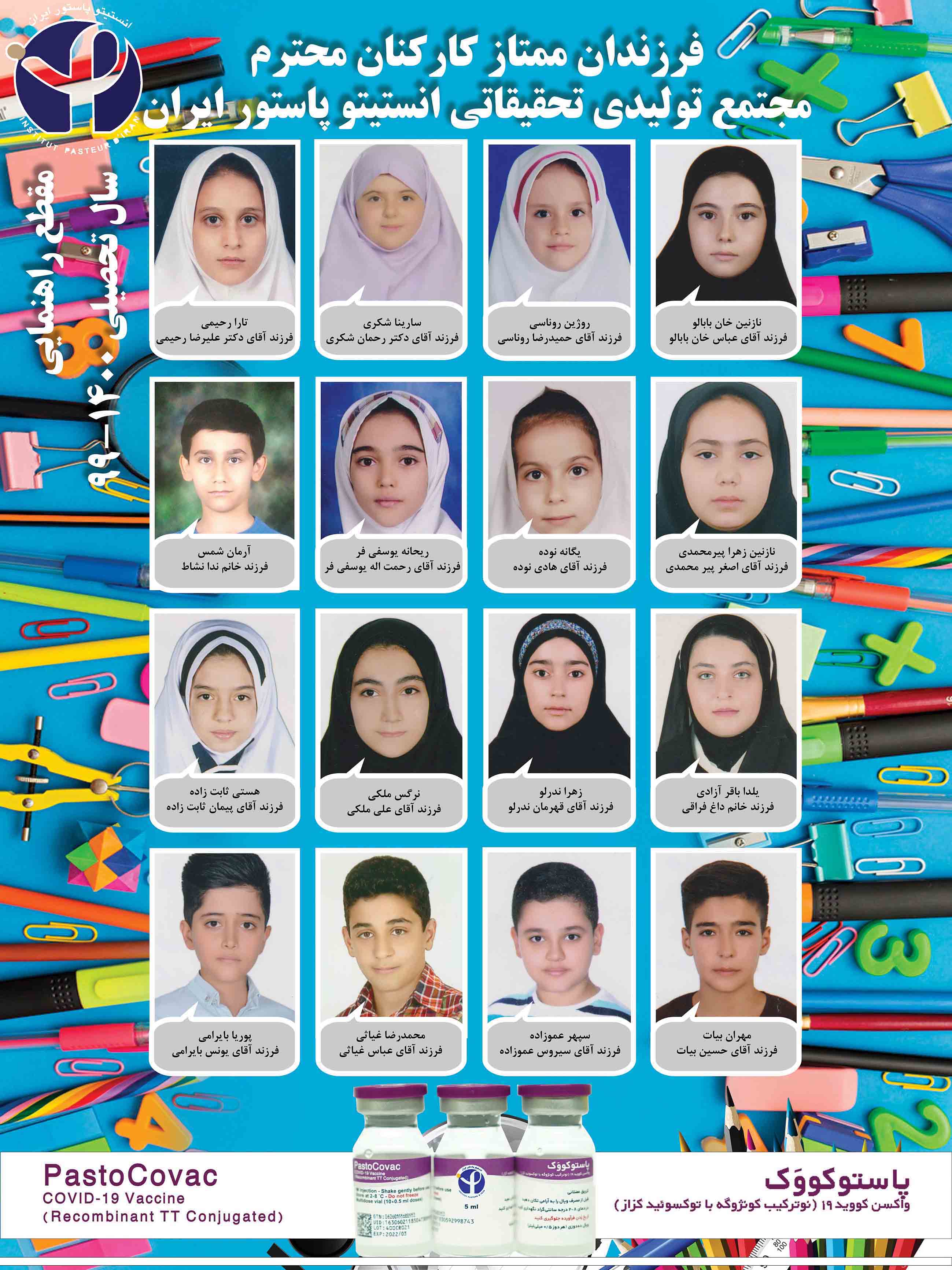 فرزندان ممتاز کارکنان محترم مجتمع تولیدی تحقیقاتی انستیتو پاستور ایران در سال تحصیلی 1400-1399