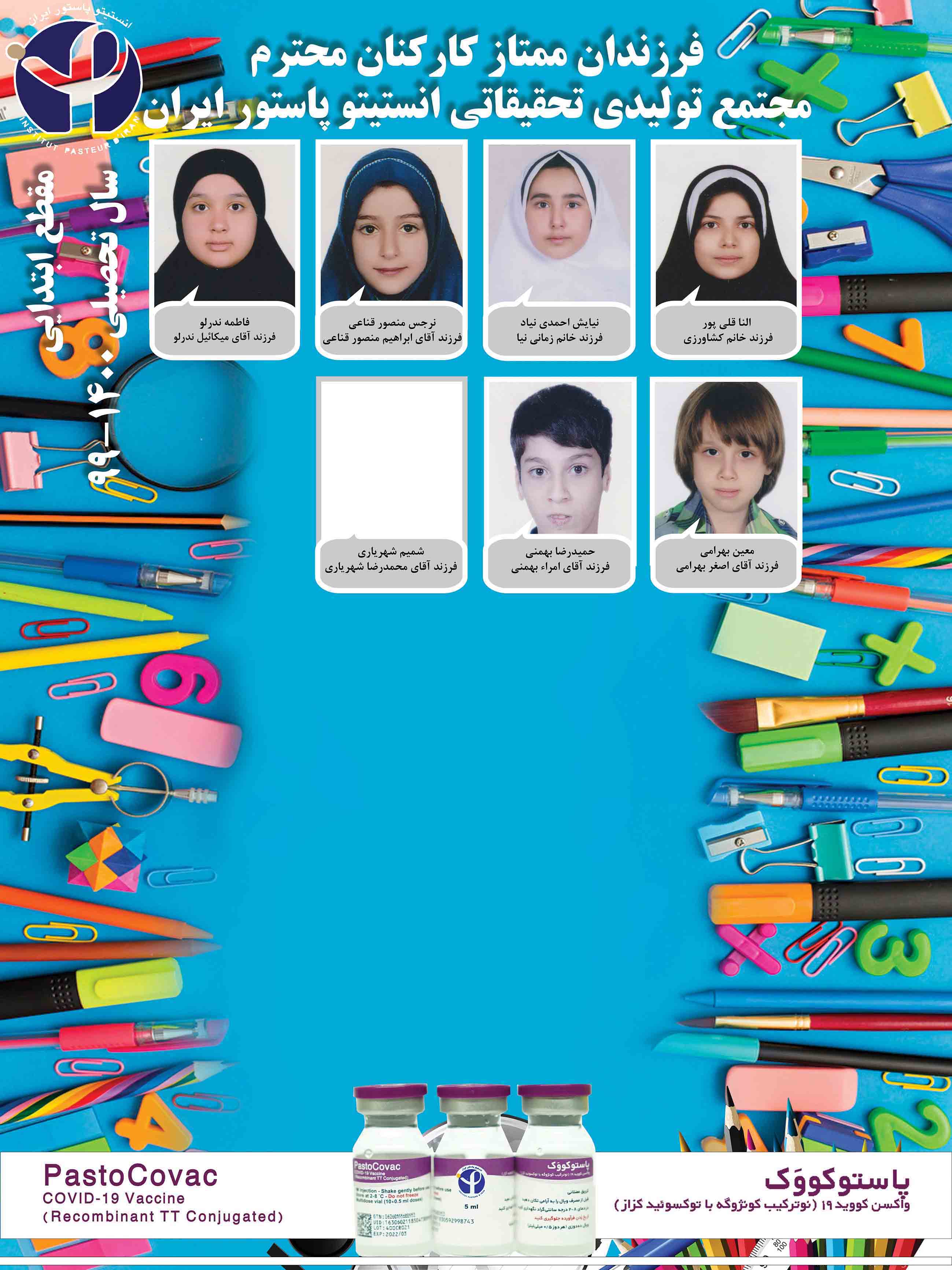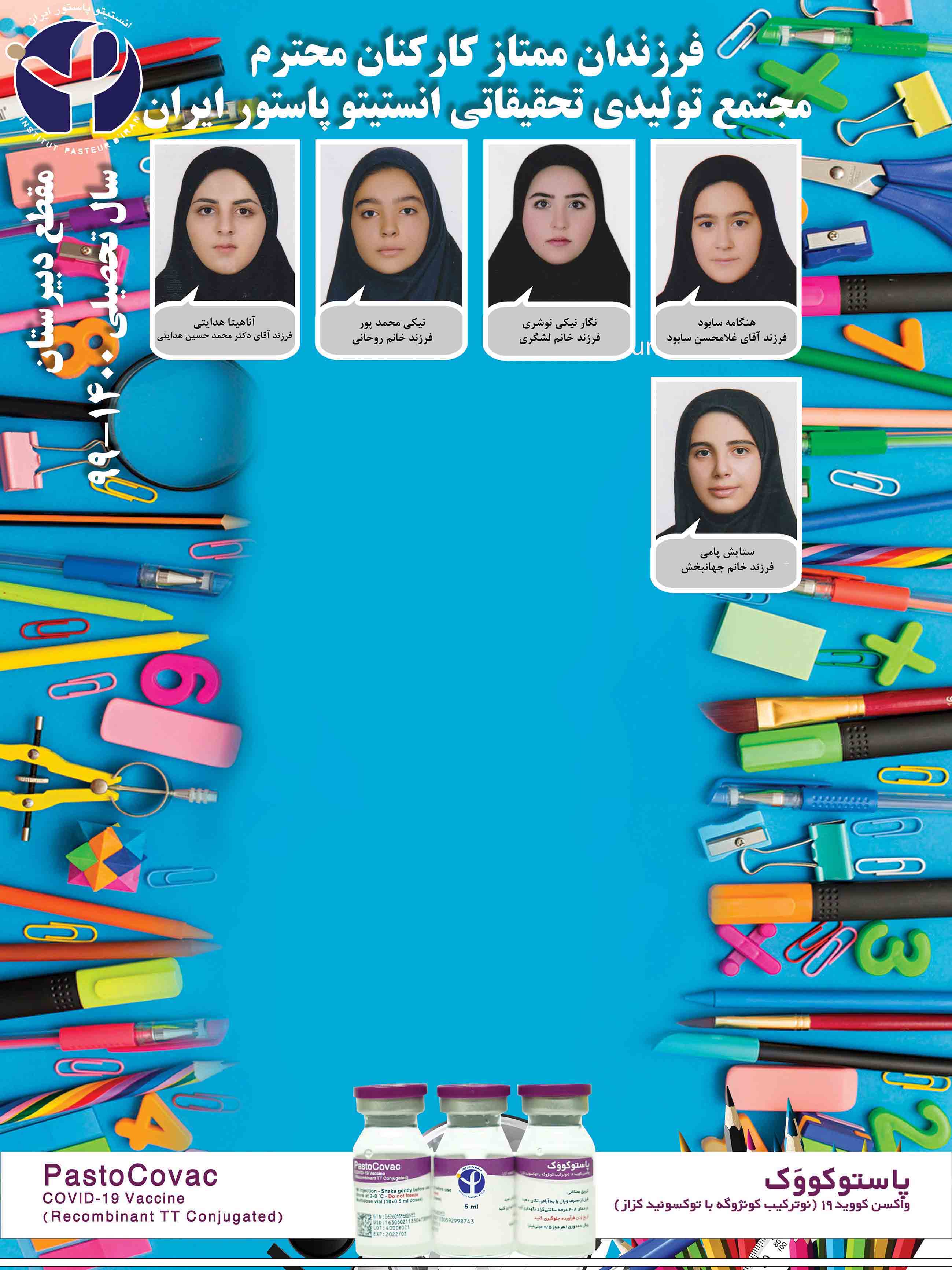 فرزندان ممتاز کارکنان محترم مجتمع تولیدی تحقیقاتی انستیتو پاستور ایران در سال تحصیلی1400-1399